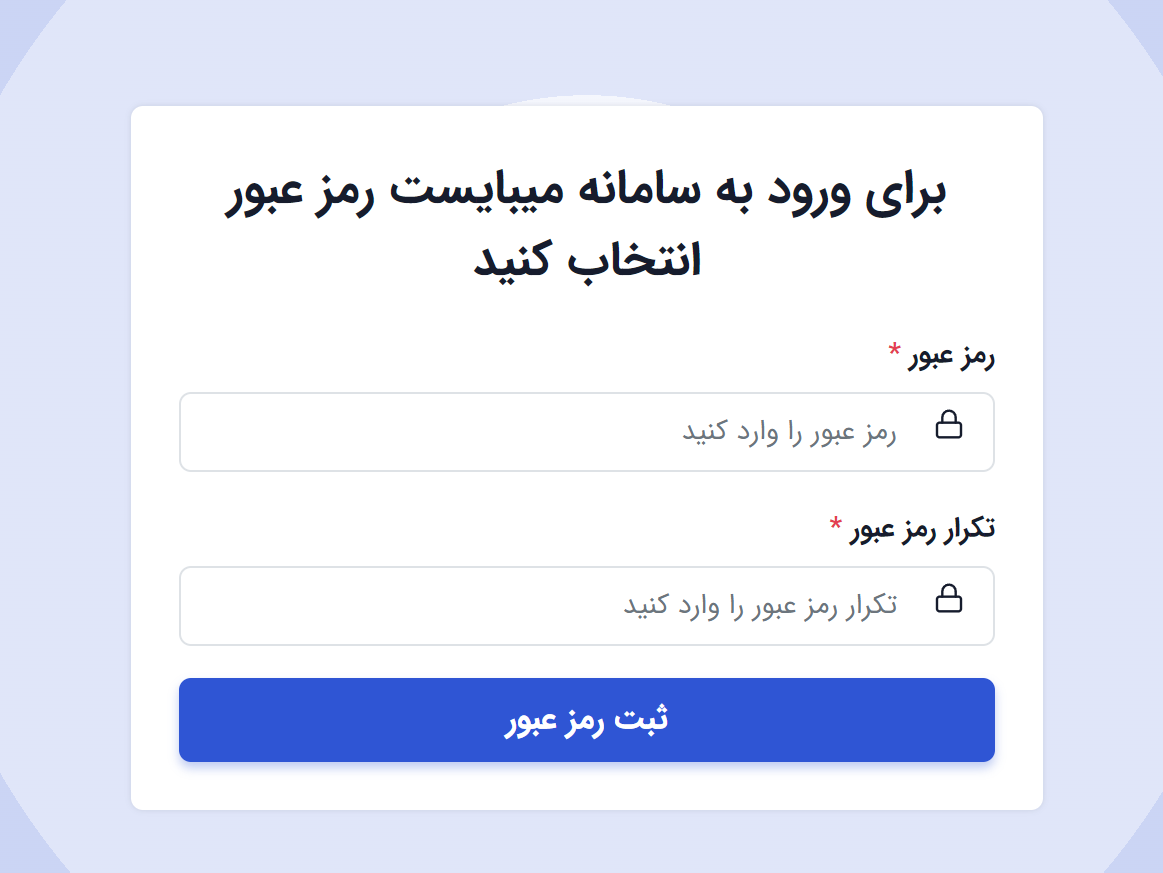 5. برای ورود به سامانه یک رمز 6 رقمی انتخاب و کلید ثبت رمز عبور را بزنید.