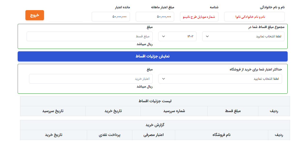 6. وارد پروفایل شخصی خود شده، اطلاعات هویتی، میزان اعتبار ماهانه، توان خرید از پذیرندگان مختلف و گزارشات خریدهای انجام شده خود را مشاهده نمایید.